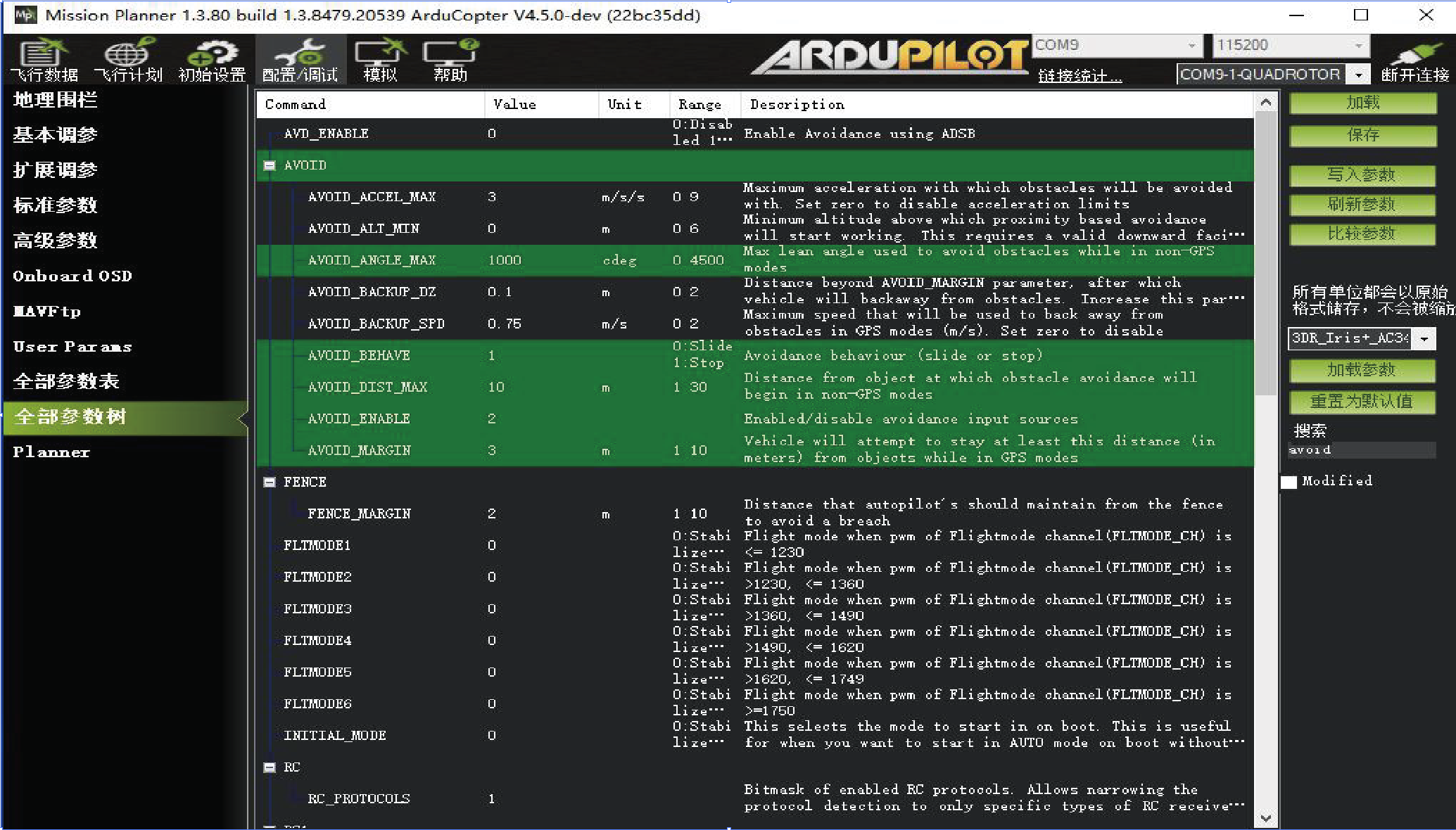通过前面章节,我们将飞控基本参数进行了修改,下面对单方向避障雷达进行配置。