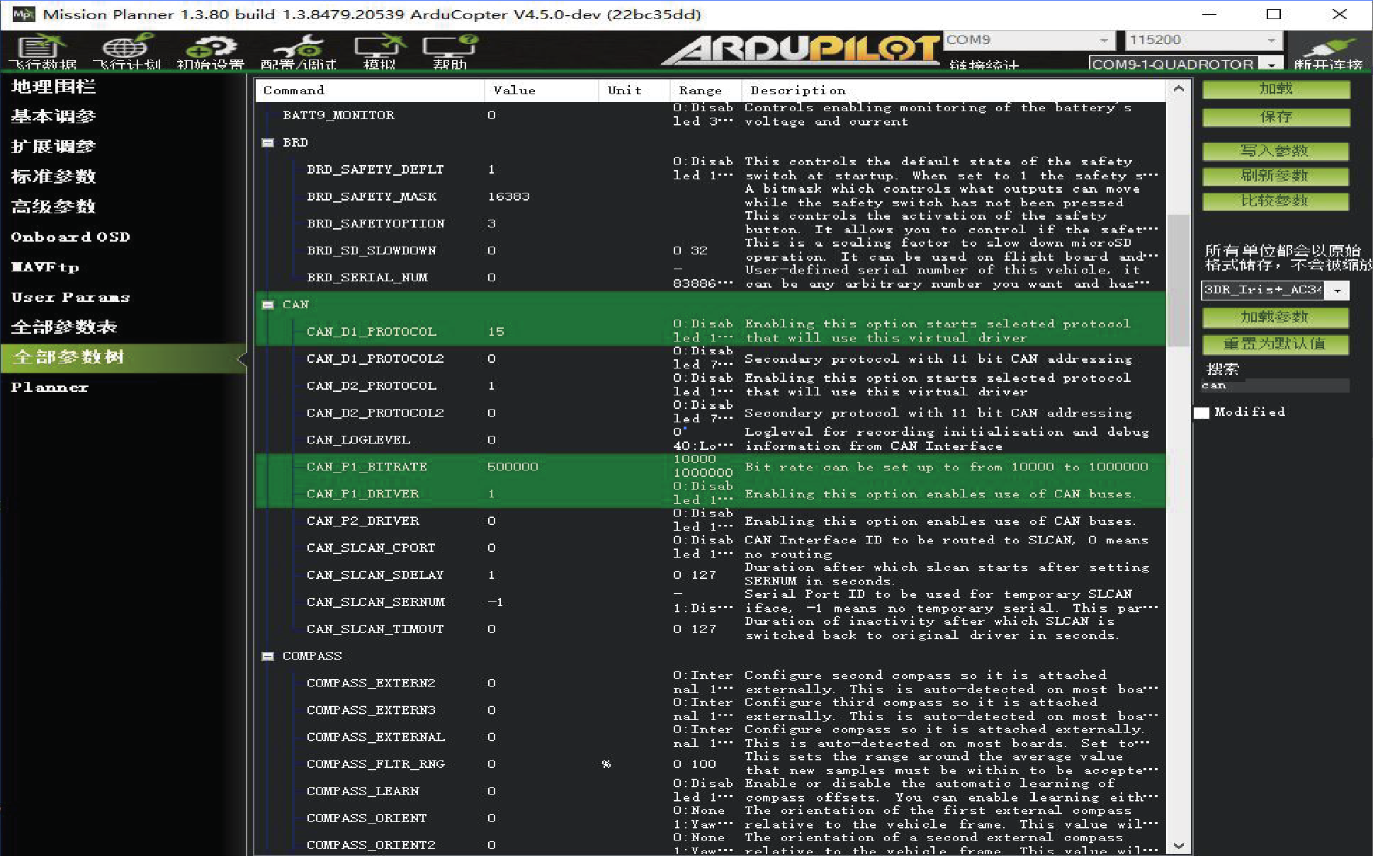 | CAN_P1_BITRATE | 500000 | CAN1接口码率为500kb/s |