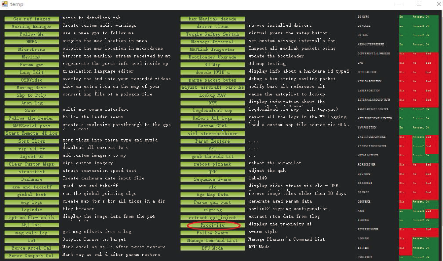 配置传感器参数后,我们点击“飞行数据”,回到主界面,通过“Ctrl+F”,打开一个隐藏界面“Temp”。