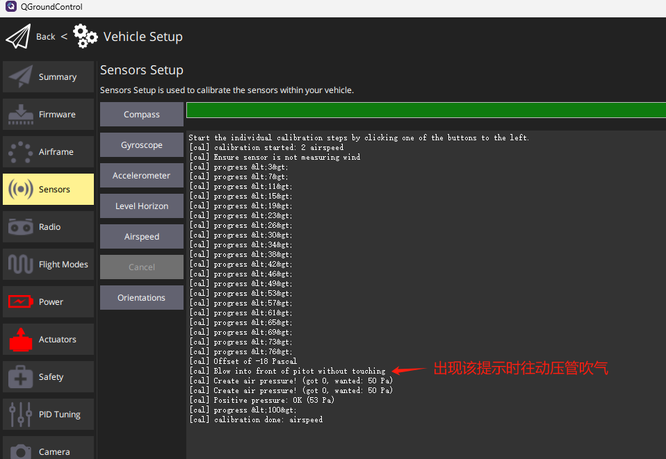 ⚠️ 重要提示:飞控必须安装内存卡才能正常使用空速计功能。
