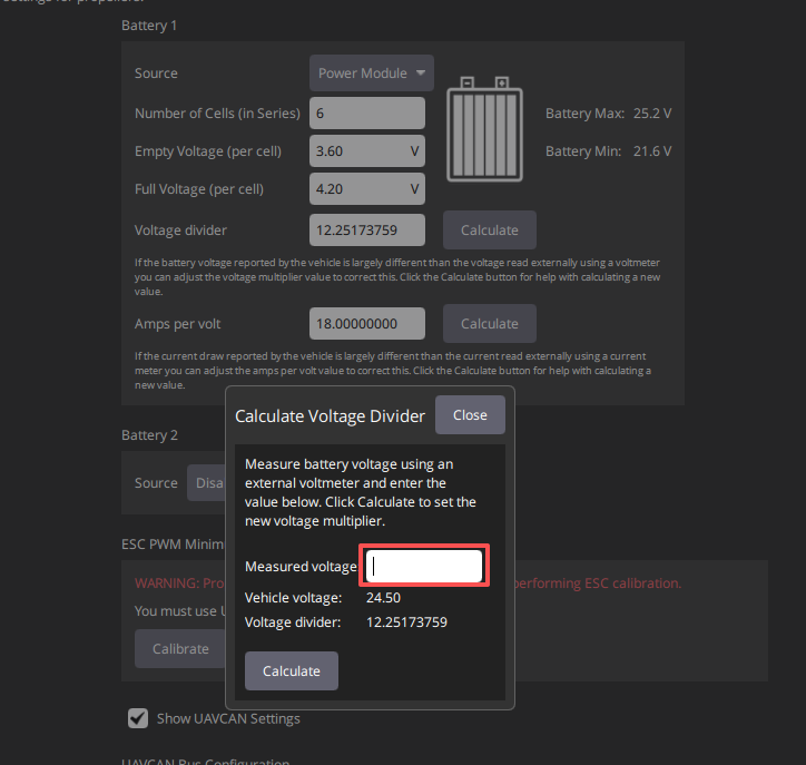 BAT1_V_DIV = 10.2(根据实际电流计分压比设置)