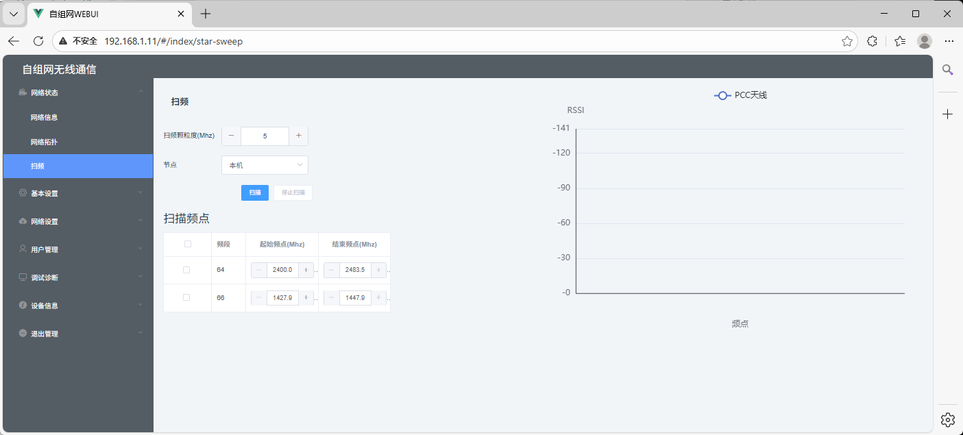 操作:支持通过选择不同频点进行扫描,选择的频点越多,扫描时间越长