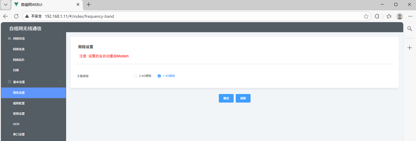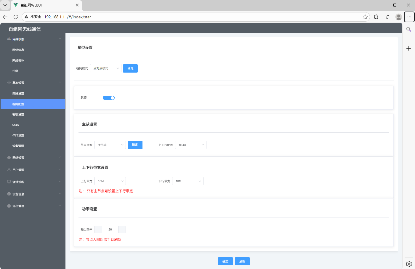 该界面可配置节点的工作模式、跳频、带宽、功率、频点,具体配置说明如下: