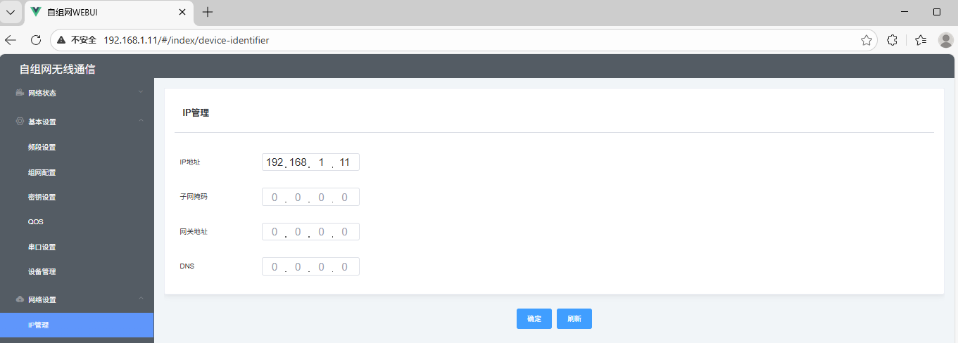 注意:PC终端需要配置为和终端设备在一个网段才能确保可以正常访问WEBUI界面,且和主从机ip不冲突。